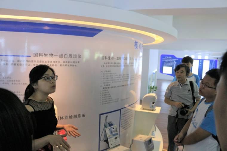 圖為安徽國科生物科技有限公司負(fù)責(zé)人向團隊成員及指導(dǎo)老師介紹公司先進的科技產(chǎn)品和已經(jīng)取得的成績。通訊員彭文婷攝