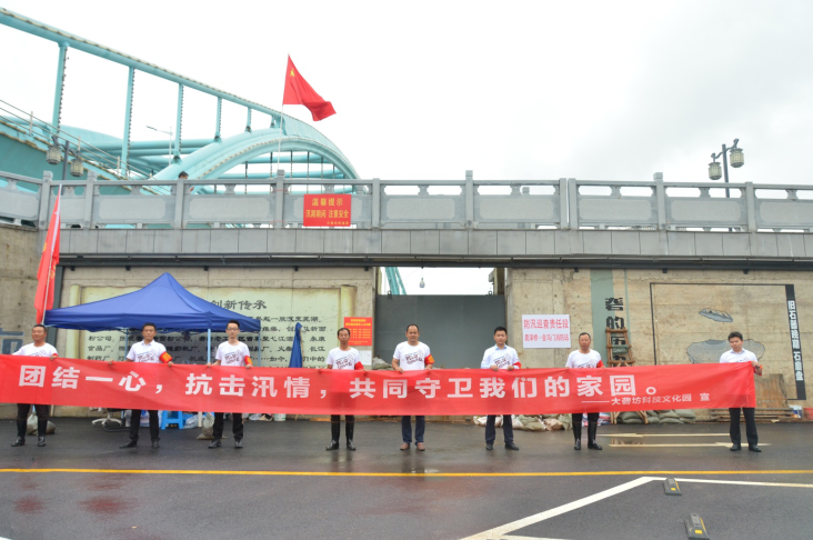 在防汛Ⅱ級(jí)響應(yīng)當(dāng)日,接區(qū)委、大礱坊街道黨工委統(tǒng)一部署,大礱坊科技文化園極速響應(yīng),落實(shí)園區(qū)袁澤橋防洪閘點(diǎn)24小時(shí)值守任務(wù)。迅速成立防汛工作領(lǐng)導(dǎo)小組,下設(shè)防汛辦公室,對(duì)接各級(jí)防汛指揮部門,積極落實(shí)防汛責(zé)任與義務(wù)。