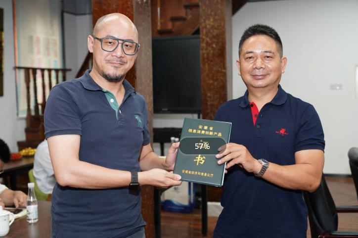 會(huì)議開始前,鏡湖區(qū)經(jīng)信局局長方仲明向企業(yè)授予安徽省第七批信息消費(fèi)創(chuàng)新產(chǎn)品證書。